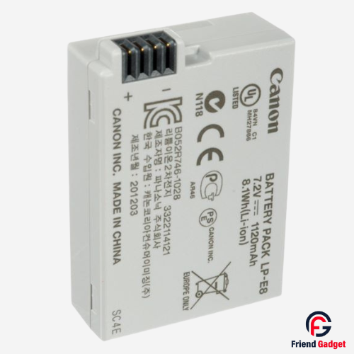 The Canon Battery Pack LP-E8 is a high-quality rechargeable lithium-ion battery designed for Canon EOS 700D, 600D, and 550D DSLR cameras. It delivers long-lasting power, stable performance, and reliable backup for photography and video shooting.