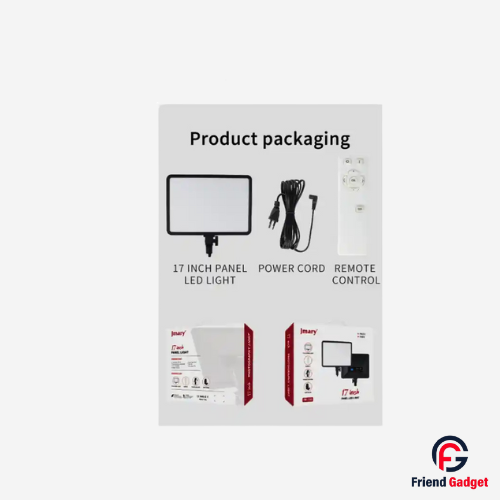 The Jmary FM‑17RS 17″ Panel Video Light is a professional soft light panel designed for content creators, photographers, and videographers in Bangladesh. Its 17-inch panel delivers broad, even lighting, making your videos and photos look polished and professional.