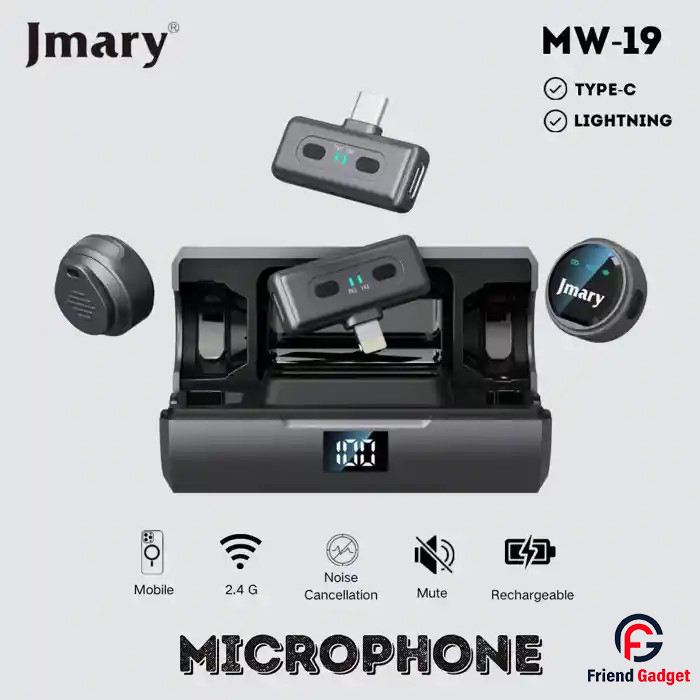 Upgrade your audio experience with the Jmary MW-19 2.4G Wireless Microphone for Mobile – your ultimate friend gadget for crystal-clear sound anytime, anywhere!