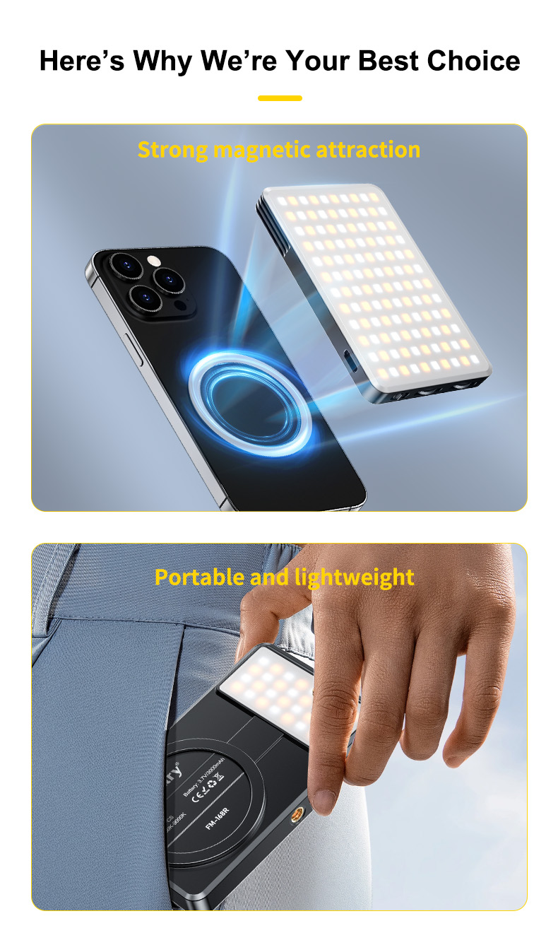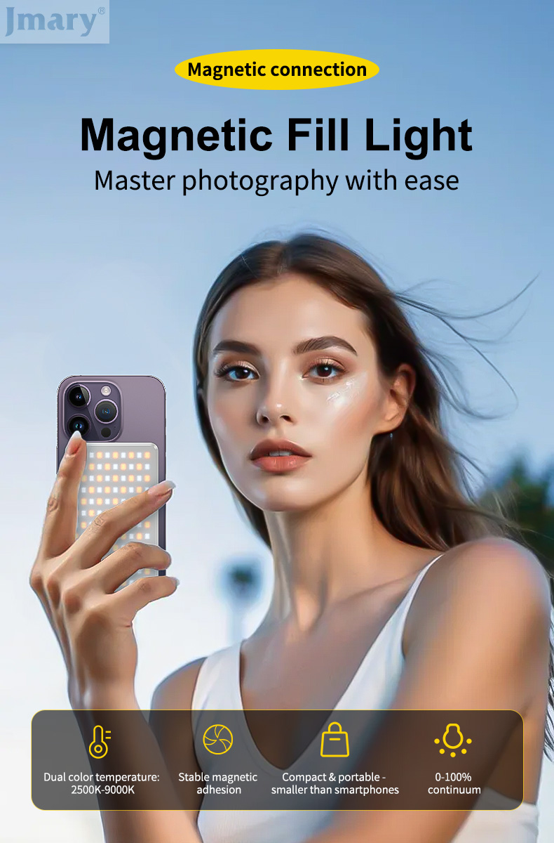 JMARY FM-168R Dual Color Temperature 160 LED Beads Portable Magnetic Phone Fill Light